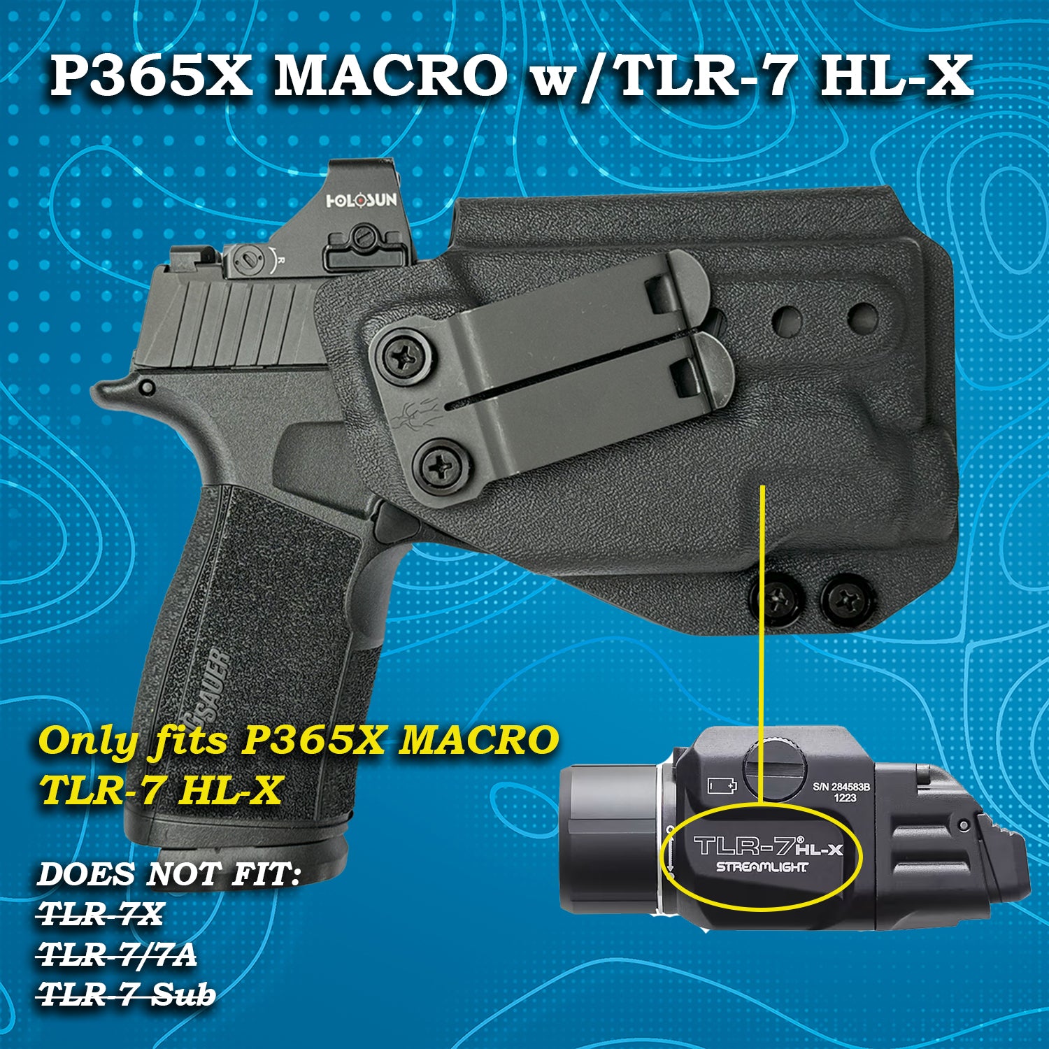 - Fits Sig P365X MACRO & TACOPS with Streamlight TLR-7 HL-X - WILL NOT FIT ANY OTHER GUN/LIGHT combo!